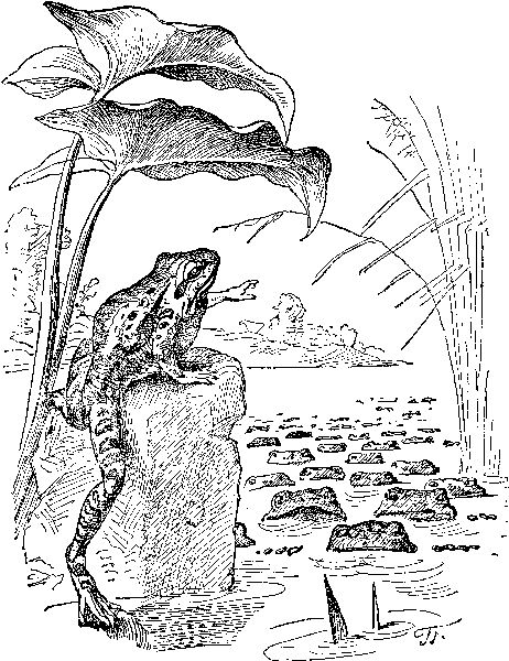 Master Bullfrog, grave and stern, Taught the classes in their turn; Taught them how to nobly strive, Likewise how to leap and dive.