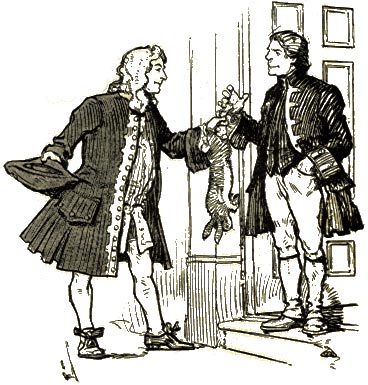 The door was opened by the man from Mr. Boyle's. The Dean bowed gracefully and said, "If you please, sir, Mr. Boyle's compliments, and he wishes you to accept of this fine rabbit."